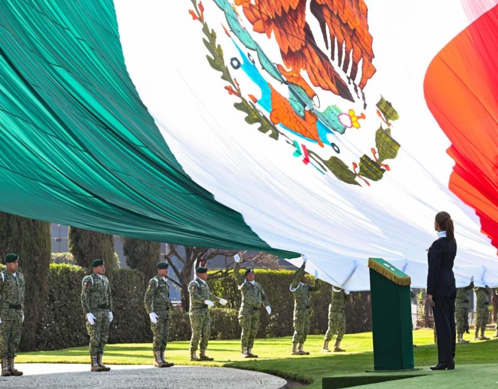 En una ceremonia de corte militar, desde Campo Marte, la mandataria federal enfatizó que en la bandera nacional se integran tres dimensiones: la raíz indígena, la emancipación colonial y la consolidación del México independiente.