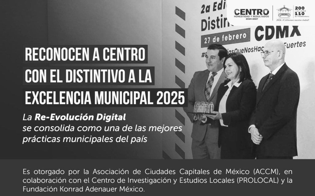 De esta manera, Centro se posiciona entre los gobiernos locales más avanzados del país, capaces de demostrar resultados medibles, innovación real y una visión sostenida de transformación.