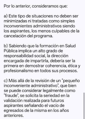 Señalan que pagaron varios miles de pesos para poder acceder, pues los diplomados, cursos, y clases de Inglés, no fueron gratis; y pese a haber sido aceptados, luego les salieron a decir que «siempre no habría inicio de Maestría». Ellos presentaron sus propuestas desde el año pasado, e iniciarían sus clases a principios del presente año.
