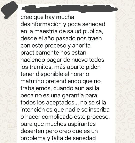 Los Médicos, al contactarnos nos revelaron varias anomalías, como el hecho de que esta Maestría se realice con convenios y becas del Consejo Nacional de Ciencia y Tecnología (CONACYT), una institución muy prestigiada, y la usen para burlarse y defraudar a los aspirantes.